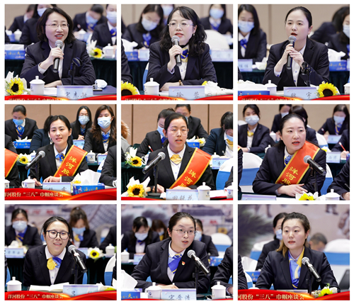 會議對各條戰線涌現出的“巾幗建功示范崗”集體、“三八紅旗手”進行了表彰,并為她們送上了榮譽獎章和鮮花。在分享交流環節,各條線女性代表立足崗位積極發言,圍繞個人成長感悟、企業二次創業怎么辦、二次騰飛怎么干等方面敞開心扉建言獻策,發出了鏗鏘有力、不讓須眉的決戰決勝之聲,現場氛圍濃厚而熱烈。