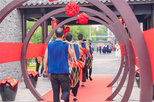 “一聲鼓響,風(fēng)調(diào)雨順!二聲鼓響,美酒天成!三聲鼓響,萬(wàn)窖齊開(kāi)!吉時(shí)已到,開(kāi)窖門!”中國(guó)釀酒大師、洋河股份總裁鐘雨,著名主持人、朗誦藝術(shù)家、中國(guó)文聯(lián)“終身成就電視藝術(shù)家” 陳鐸,中國(guó)釀酒大師、洋河股份總工程師周新虎和中央電視臺(tái)詩(shī)詞大會(huì)總顧問(wèn),清華大學(xué)、南京師范大學(xué)教授鐘振振敲響吉祥鼓,2023年洋河·雙溝頭排酒開(kāi)窖儀式正式開(kāi)始。
